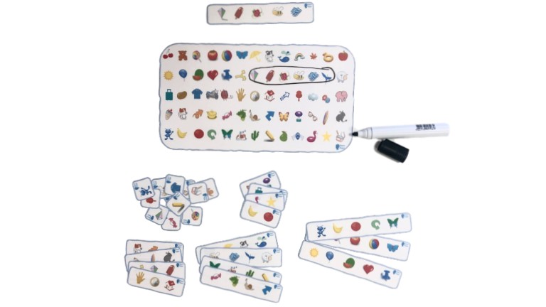 El material, que podréis descargar al final del post, esta compuesto por una lámina llena de imágenes y varias tarjetas con conjuntos de esas imágenes. Además contiene 12 tarjetas de 1 dibujo, cuatro de 2 dibujos, cuatro de 3 dibujos, cuatro de 4 dibujos y cuatro de 5 dibujos.