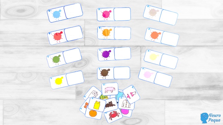 En esta actividad, los peques deberán elegir el dibujo del color correspondiente y ponerlo en la tarjeta.
