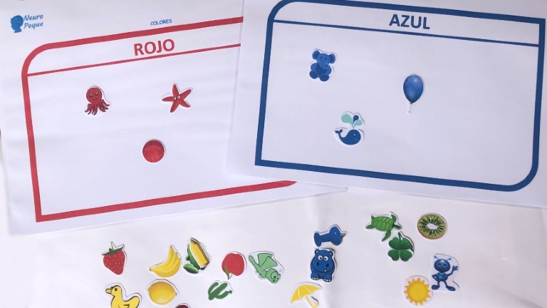 La idea es poder clasificar los dibujos en cada lamina según el color. Aunque también se puede clasificar los dibujos según categoría (animales, frutas…).
