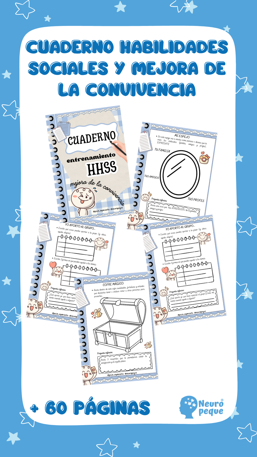 Este cuaderno de Habilidades Sociales y Mejora de la Convivencia CONSTA de más de 60 PÁGINAS y está diseñado para ayudar a los niños y niñas a conocerse mejor a sí mismos, aprender a expresar sus emociones, respetar a los demás y resolver conflictos de manera positiva.