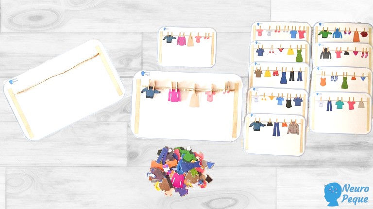 Si lo preferís, en lugar de utilizar las pinzas y el cordel, para que los peques puedan quitar y poner en las láminas la ropa podéis utilizar velcro.