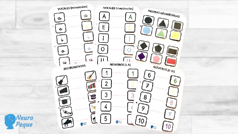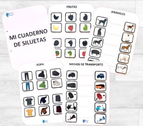 Este material descargable incluye 10 láminas con diferentes siluetas de conceptos como las frutas, los medio de transportes, los instrumentos, ropa, animales, números, vocales, formas…asociados a sus imágenes correspondientes.
