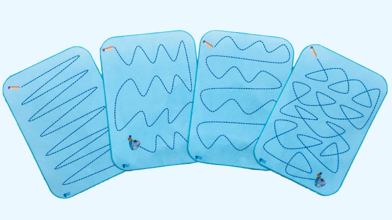 La actividad consiste en repasar las líneas. Podemos ir dándoles las tarjetas de menor a mayor nivel de dificultad o bien dejarlas repartidas y que los niños vayan repasando las líneas. De esta forma, trabajamos la grafomotricidad en los niños, prerrequisito básico de la escritura. Además, también trabajaremos la atención/concentración.